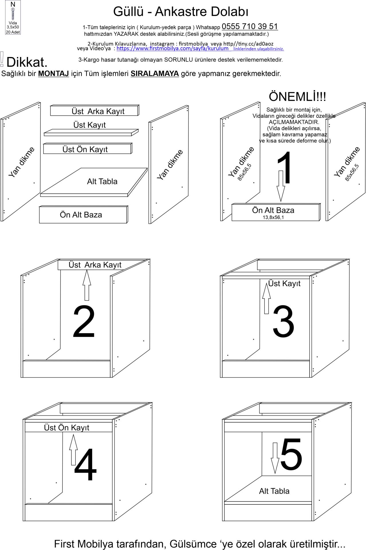 First Mobilya Güllü - Ankastre Mutfak Dolabı Ankastre Modül Dolap Fırın Ocak Dolabı Çok Amaçlı Dolap