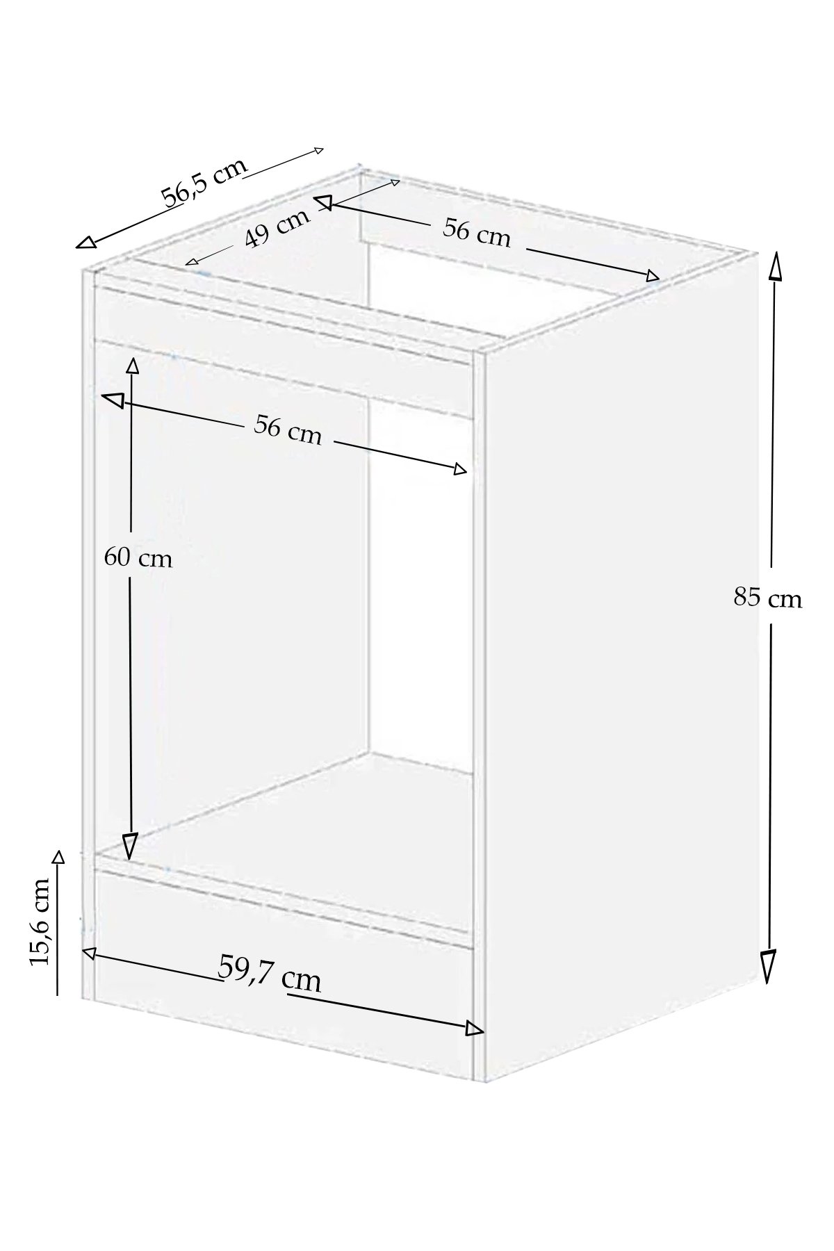 *Dış Ölçüler: en:56 cm, boy: 59,7 cm, yükseklik:85 cm. İç ve dış ölçüler görseldeki şemada yer almaktadır.