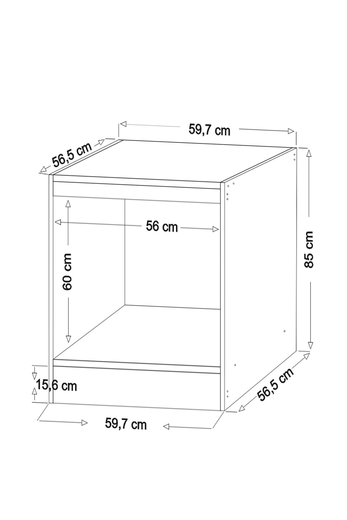 *Dış Ölçüler: en:56 cm, boy: 59,7 cm, yükseklik:85 cm. İç ve dış ölçüler görseldeki şemada yer almaktadır.