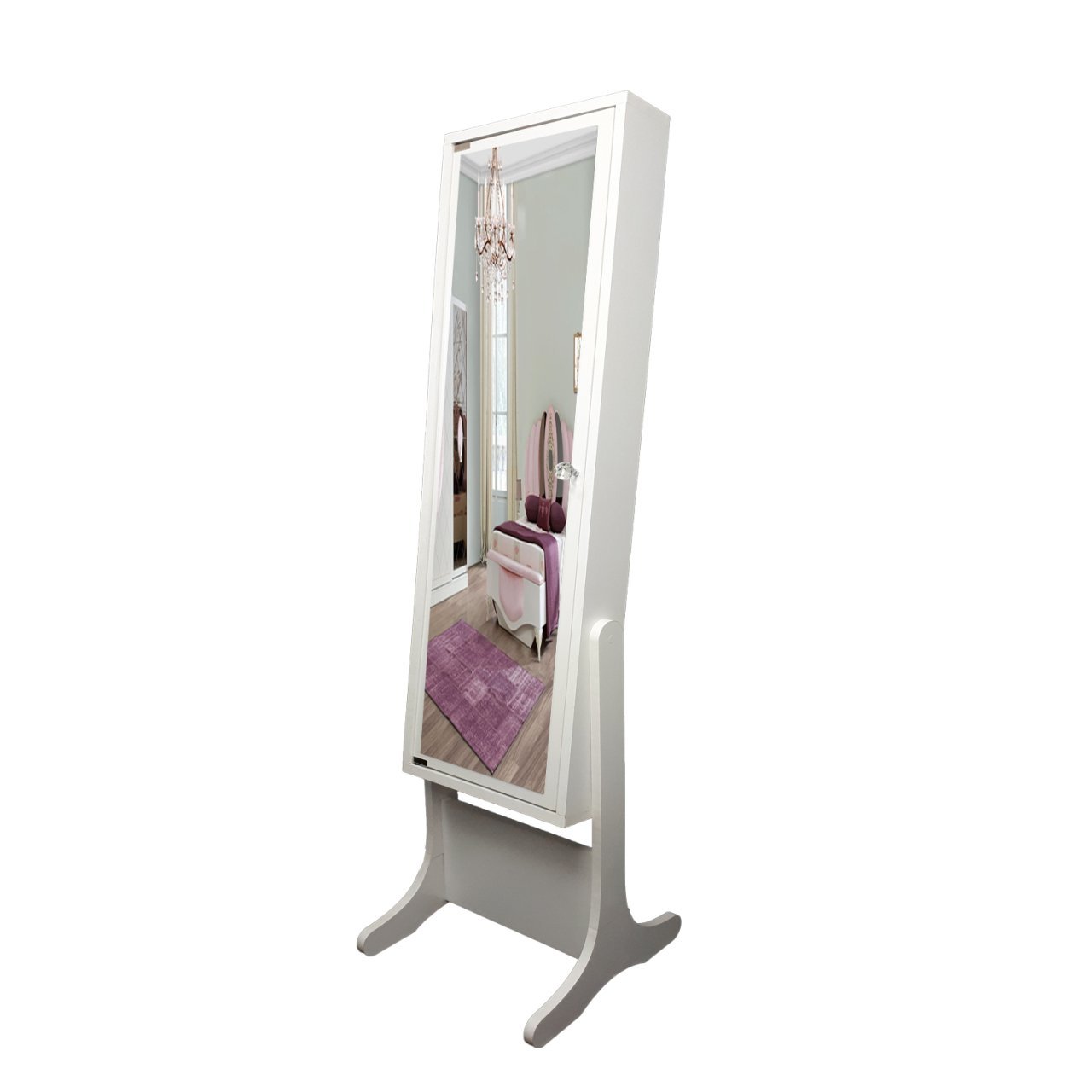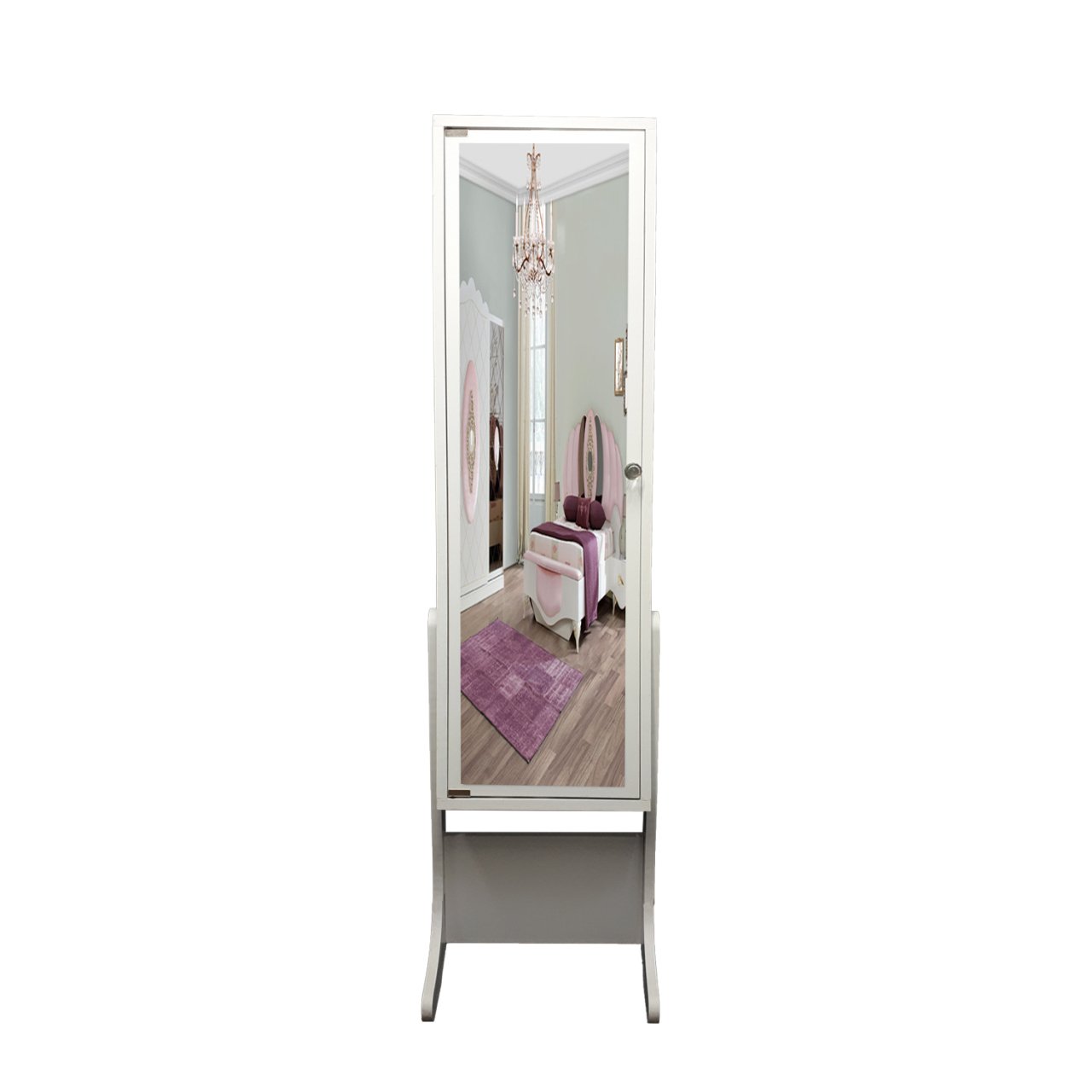 Takı Dolabı - 08 - Number One Aynalı Takı Dolabı -- Ayaklı Beyaz/Pembe