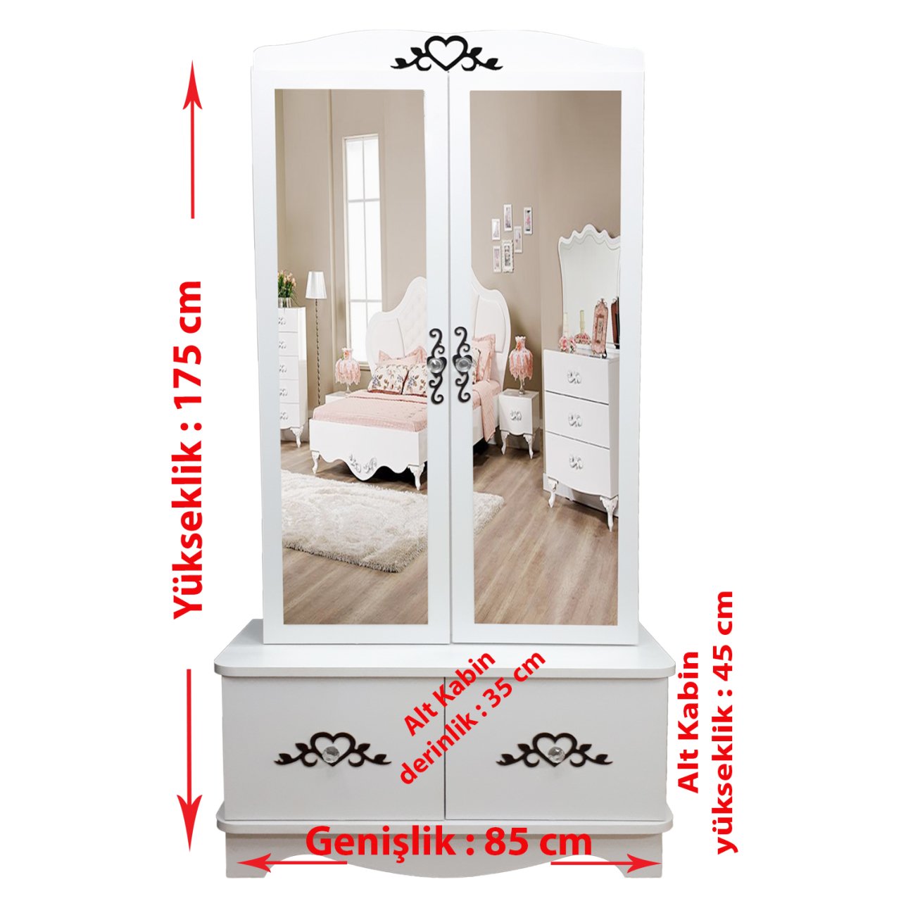 Takı Dolabı - - Elmas Çok Amaçlı Dolap 2K 2KK Beyaz
