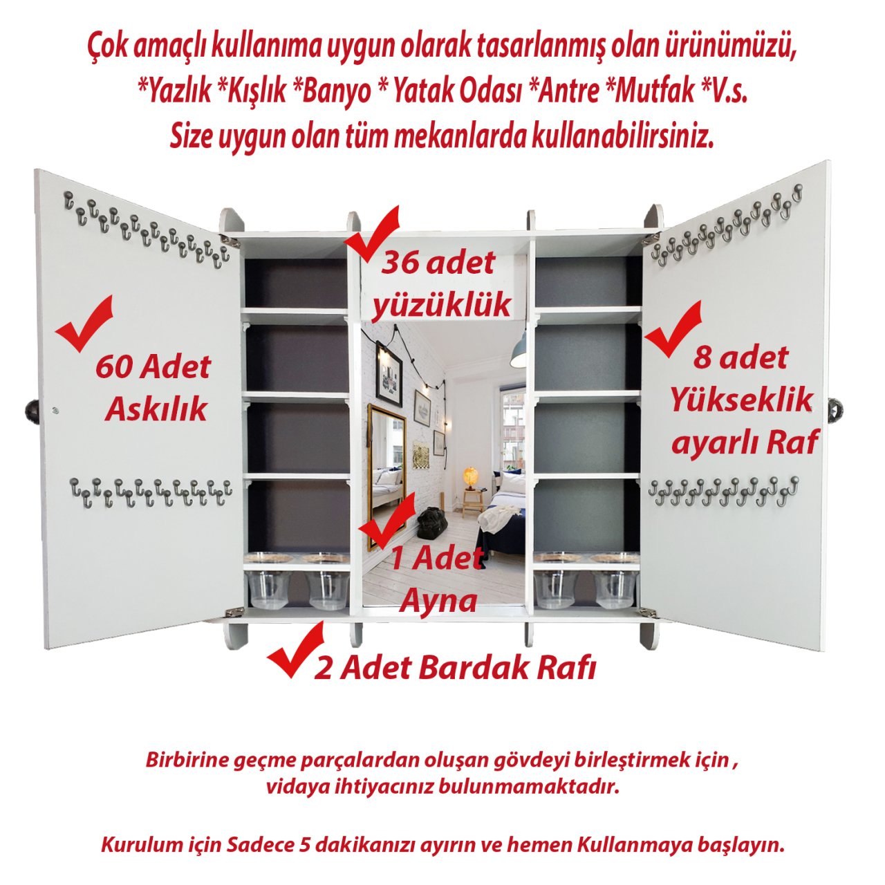 Takı dolabı şık ve kullanışlı hem makyajınızı tazeleyebilir hem de takılarınızı düzenleyebilirsiniz.
