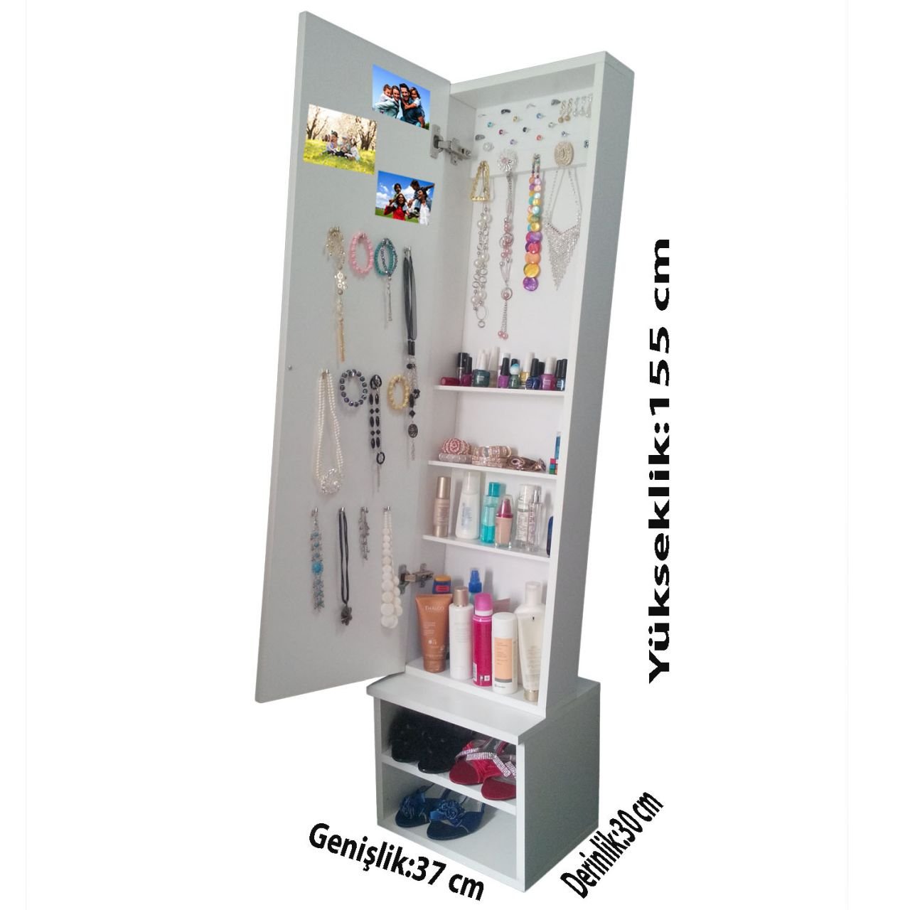 Takı Dolabı - Smile - Aynalı Takı Dolabı & ayakkabılıklı & beyaz
