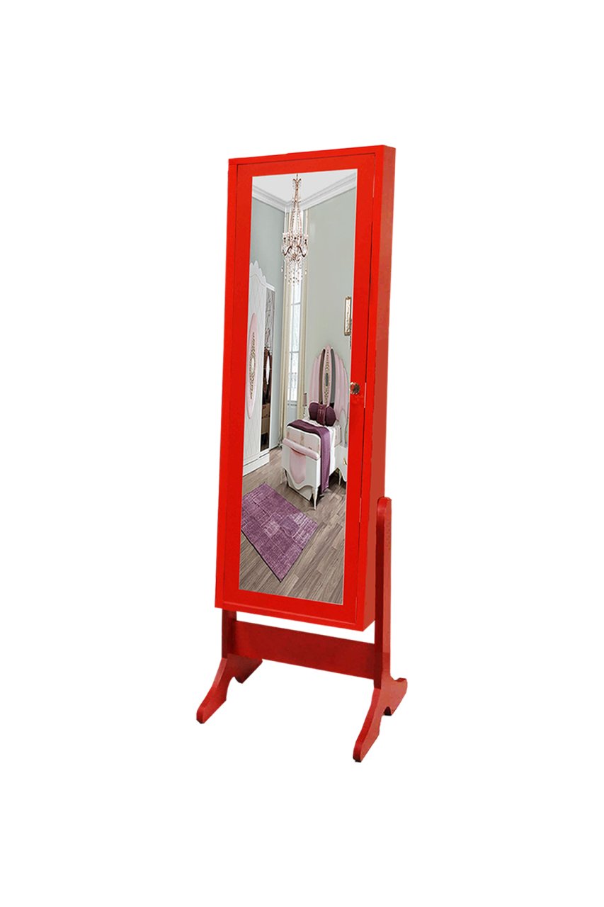 Takı Dolabı - Trendy-Aynalı Takı Dolabı-KIRMIZI/SİYAH