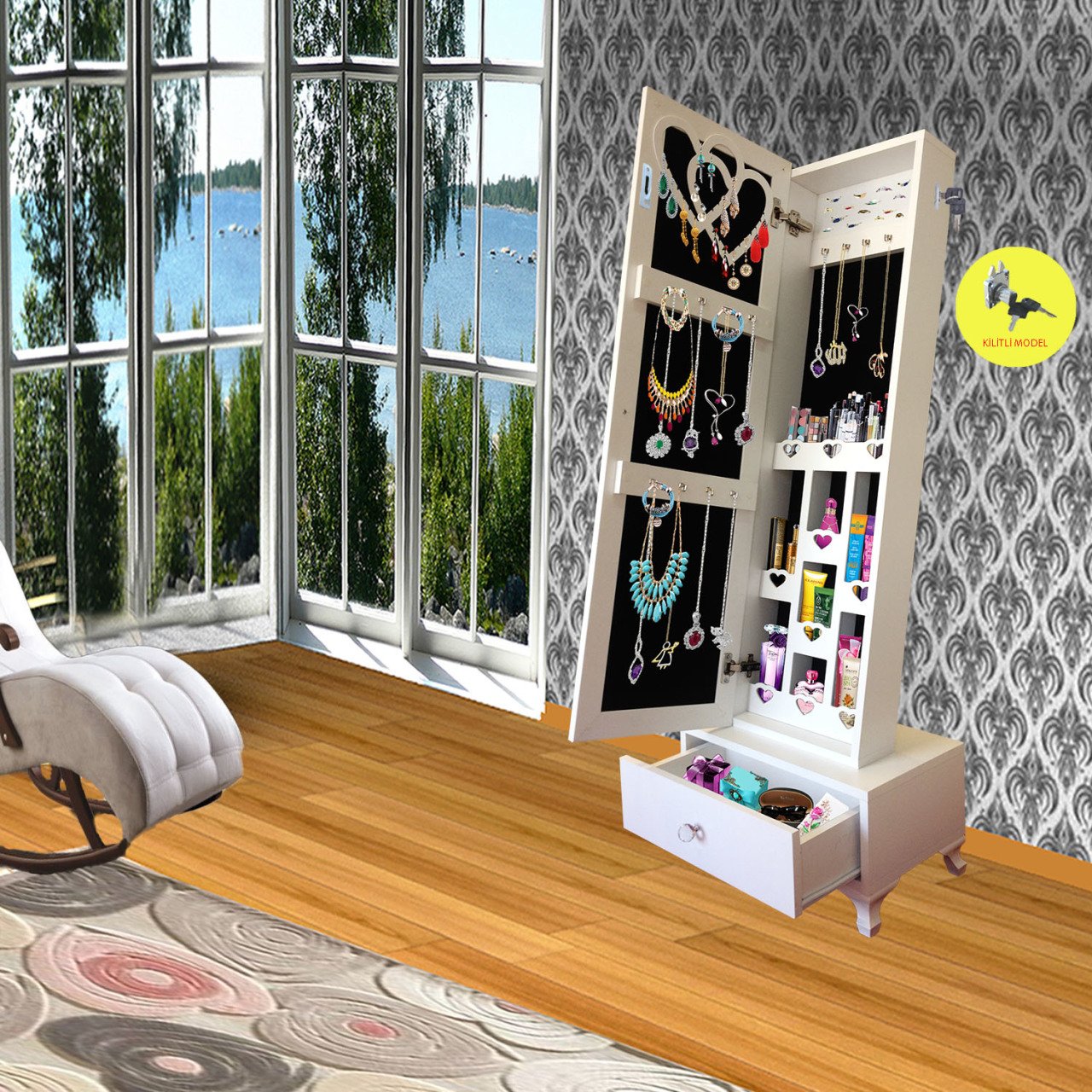 Takı dolabı şık ve kullanışlı hem makyajınızı tazeleyebilir hem de takılarınızı düzenleyebilirsiniz.