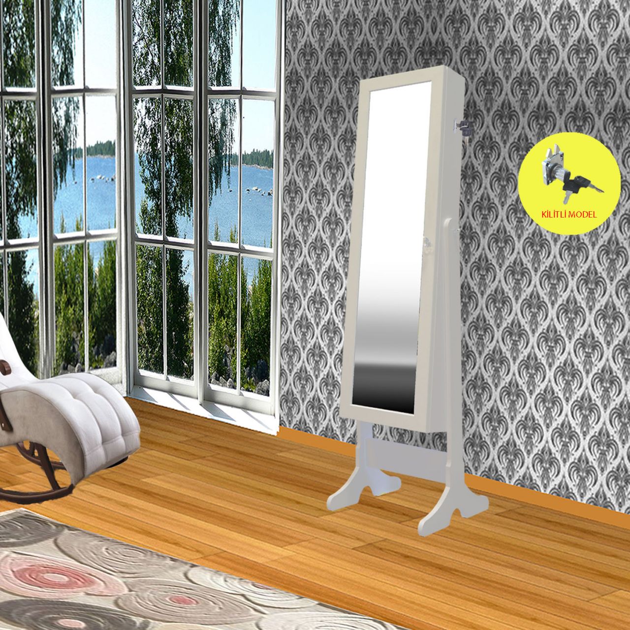 Takı Dolabı - Trendy-Kilitli & Aynalı Takı Dolabı-BEYAZ/SİYAH
