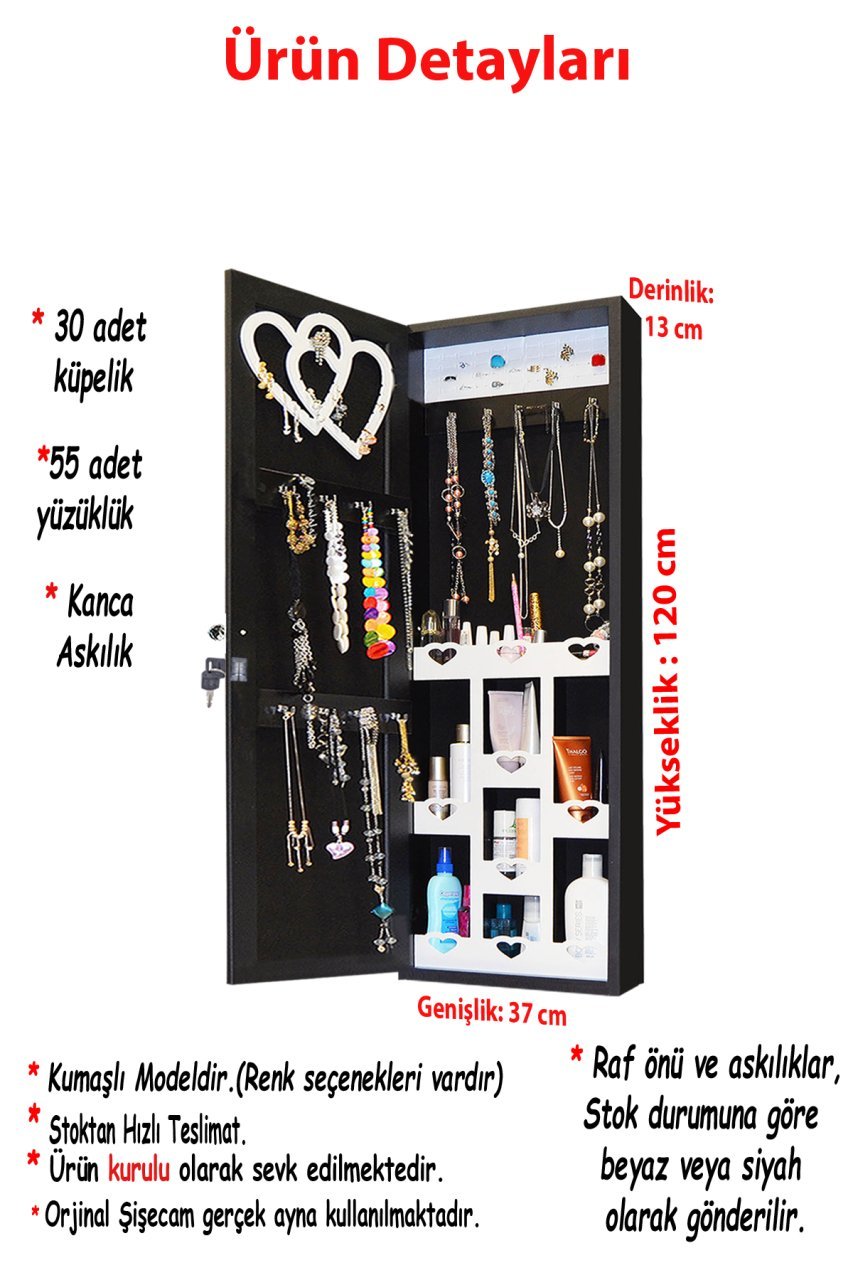 Takı dolabı şık ve kullanışlı hem makyajınızı tazeleyebilir hem de takılarınızı düzenleyebilirsiniz.